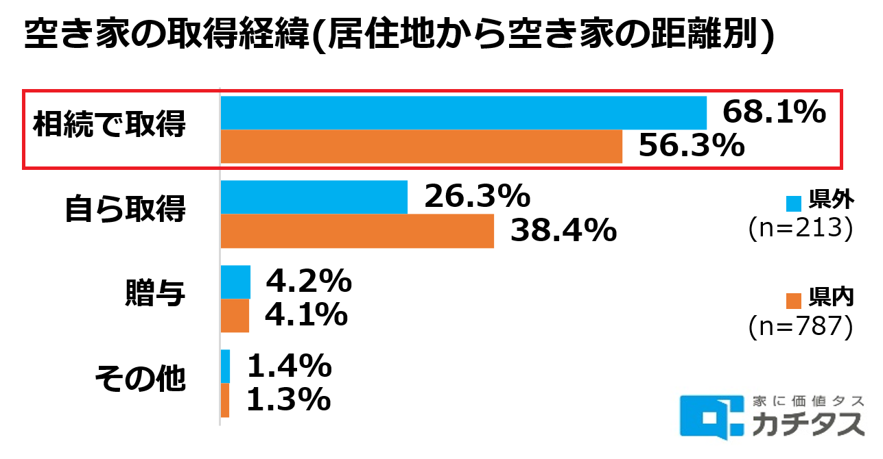 - 空き家の取得経緯として最も多いのは「相続(58.8%)」。