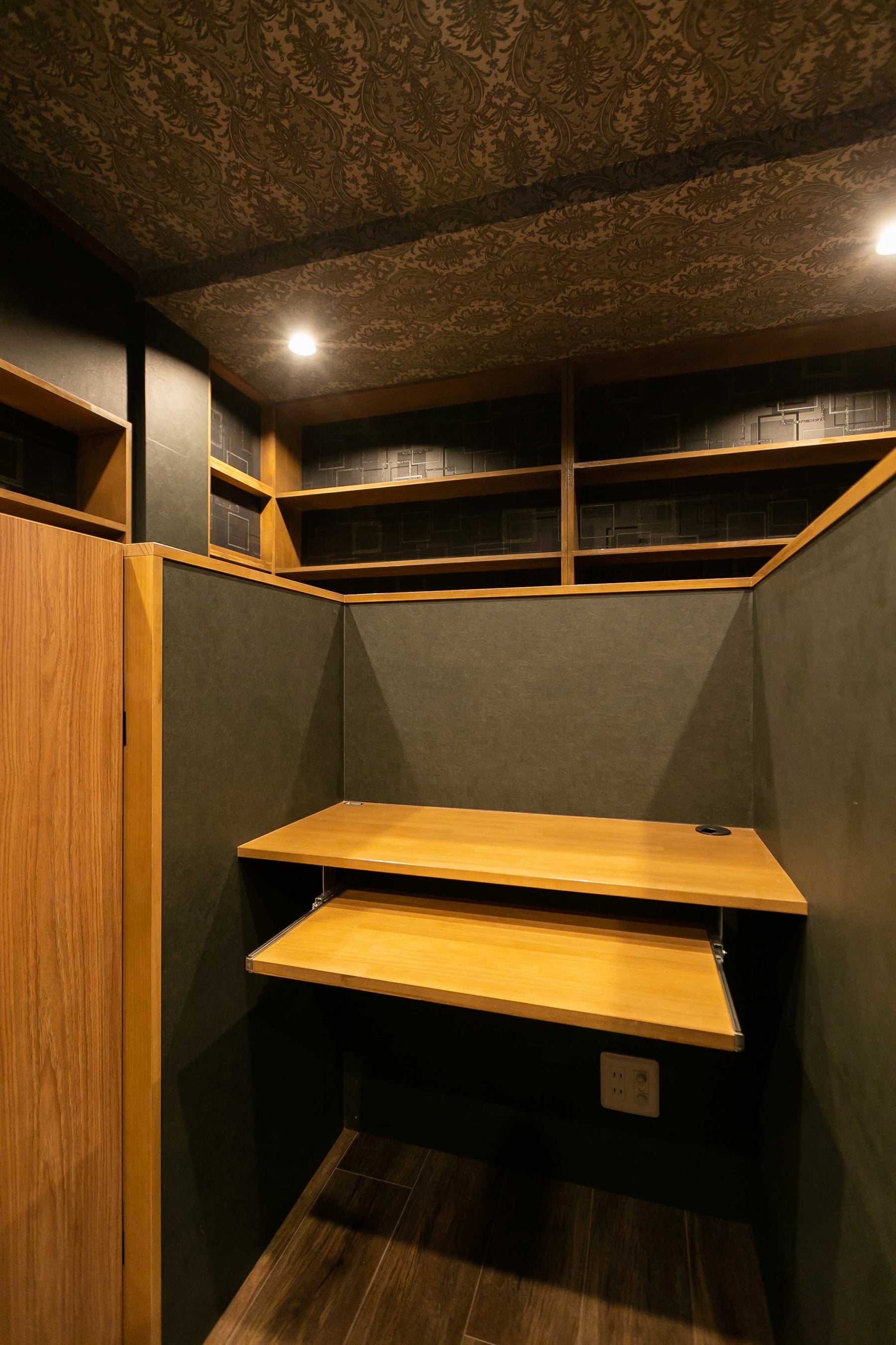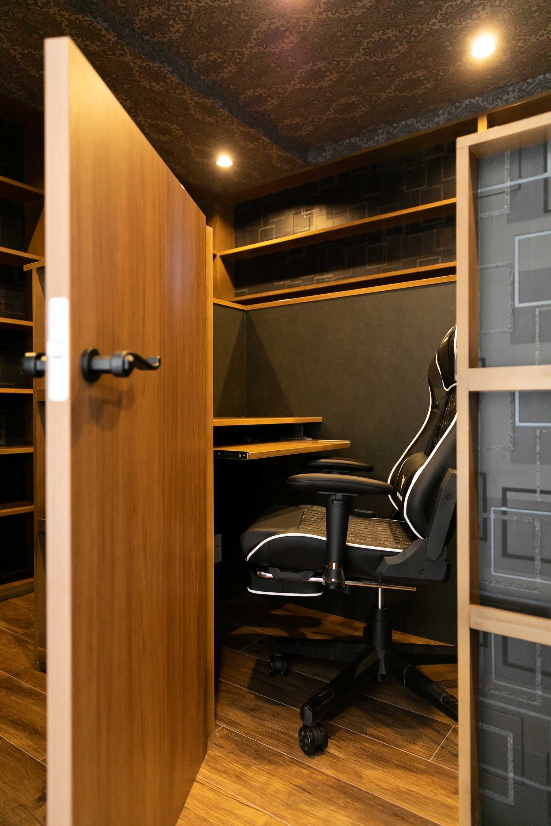そこで、自分が好きな本を自分好みに収納することができ、思い立った時に気軽に読書に没頭できる部屋の制作を考えました。突き詰めるとその願いを叶える形はマンガ喫茶のスタイルが一番よいと考え、部屋の中に個室ブースを設けた本好きな人のためのマンガ喫茶仕様に改装しました。
