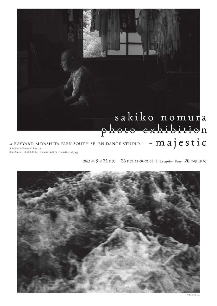 年に一度の正式参拝「大山詣り」この伝統行事に参加しその一部を切り取った写真家 野村佐紀子の作品68点を収録した写真集「MAJESTIC」の発売を記念し同作品約20点をプレビューできる期間限定の展覧会です。この作品集はこの展覧会限定で販売致します。今後オーストラリア、アメリカなど海外を巡回する予定となっている貴重なモノクロームプリントと作品集をぜひご覧ください。