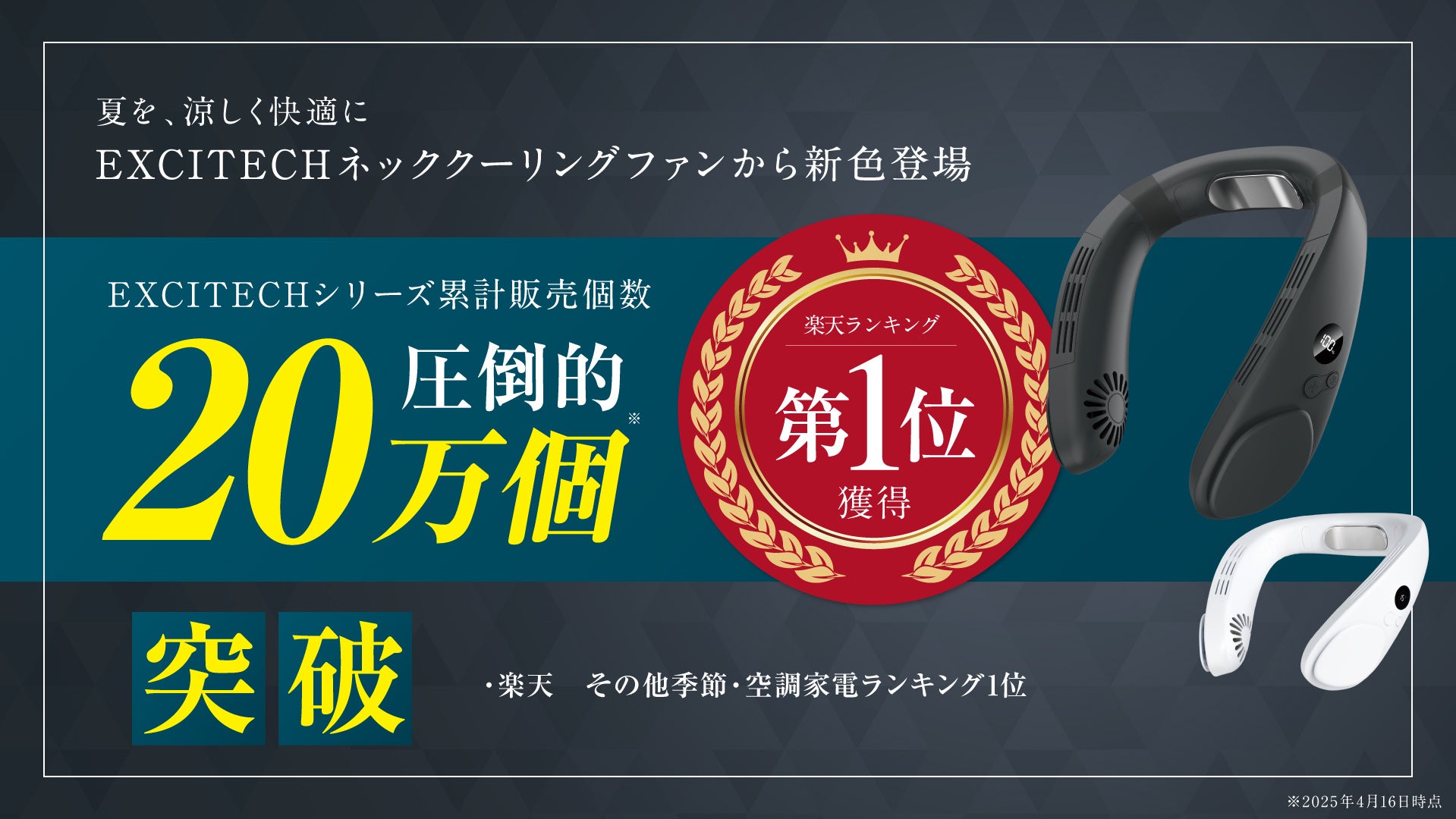 「本当に必要とされる商品を世界に流通させる」という理念のもと、数多くのベストセラー商品を世に送り出してきた株式会社Extage(大阪市中央区、代表取締役社長:野口拳大、以下「Extage」)は、当社が手がけるブランド「EXCITECH(エキサイテック)」のネッククーリングファンが発売から2年で累計出荷個数4万個を突破し、今回待望の新色(ブラック)を販売したことをお知らせいたします(2024年5月13日時点)。