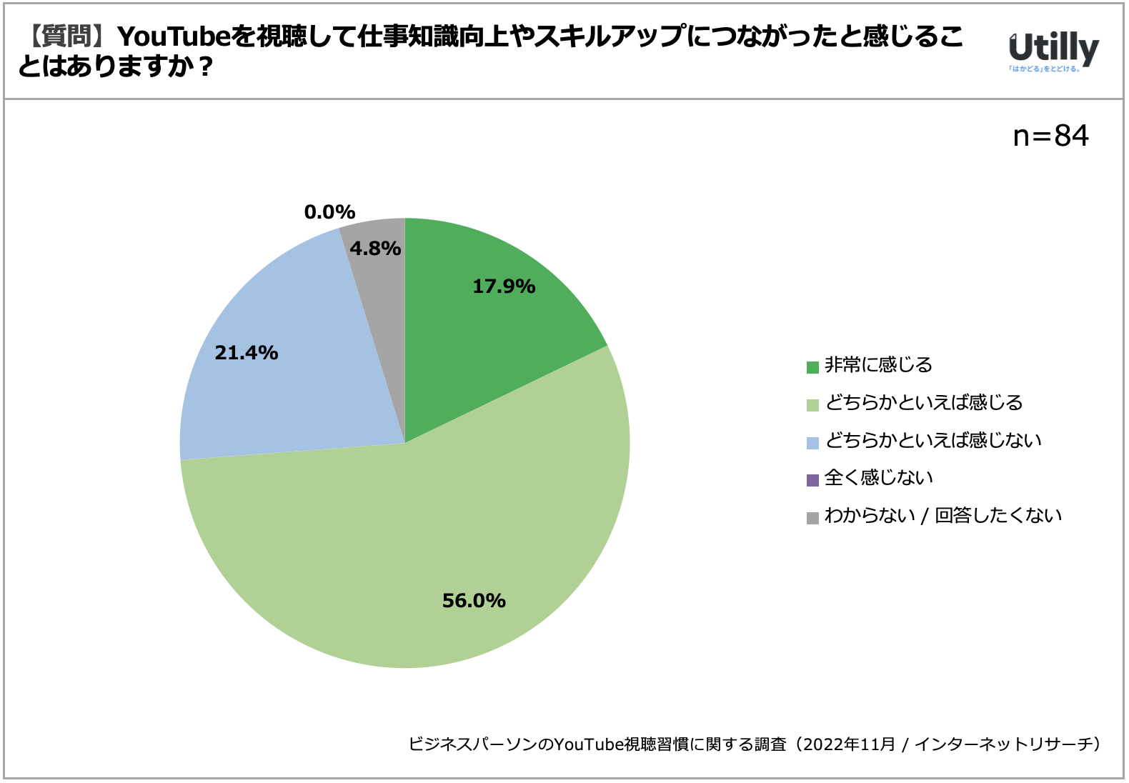 【質問】YouTubeを視聴して仕事知識向上やスキルアップにつながったと感じることはありますか?