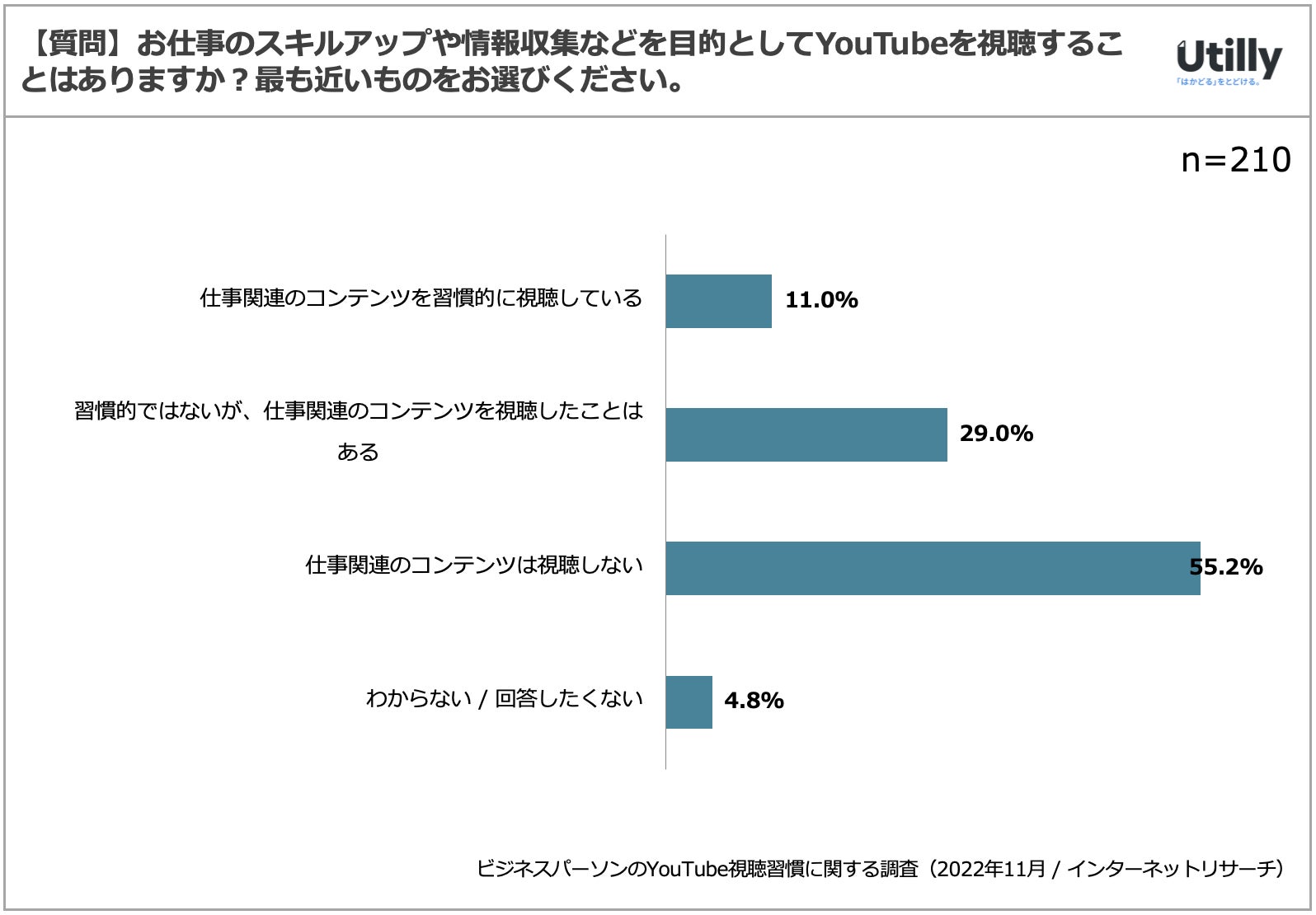 【質問】お仕事のスキルアップや情報収集などを目的としてYouTubeを視聴することはありますか?最も近いものをお選びください。