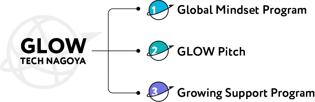 第二弾であるGLOW Pitchでは、ピッチコンテストを通して、世界に通用する可能性のあるアイデアを名古屋の地から発掘します。スタートアップ企業と投資家等との接点を生み出すことだけでなく、イベント実施後の支援金交付や伴走型支援プログラム「Growing Support Program(グローイングサポートプログラム)」の実施により、新たなテクノロジーを用いてグローバル展開を目指すスタートアップの急速な成長を支援します。