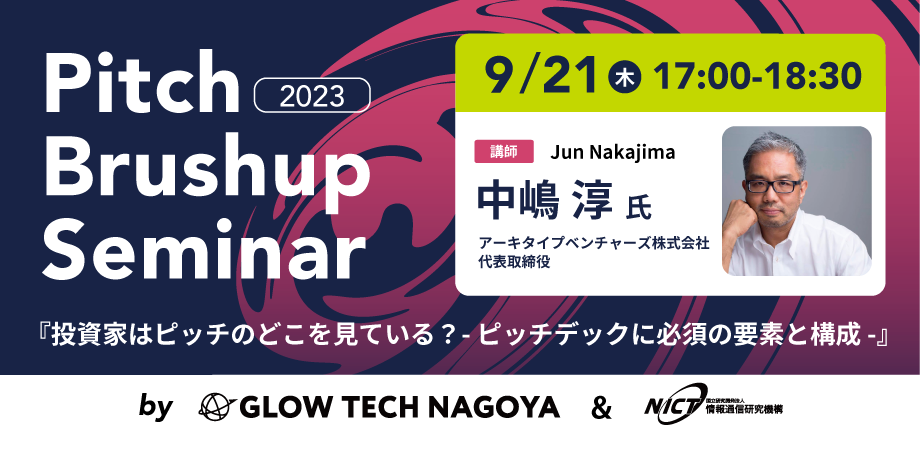 ※本セミナーは、昨年度より開始したGLOW PitchとNICT(国立研究開発法人情報通信研究機構)の事業連携の一環として、NICTのICTメンターネットワークを活用して実施されます。