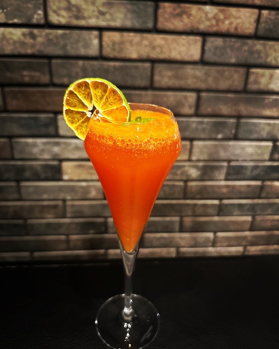 生搾りのみかん果汁をふんだんにに使用したモクテル。少しほろ苦いシロップがアクセントに!