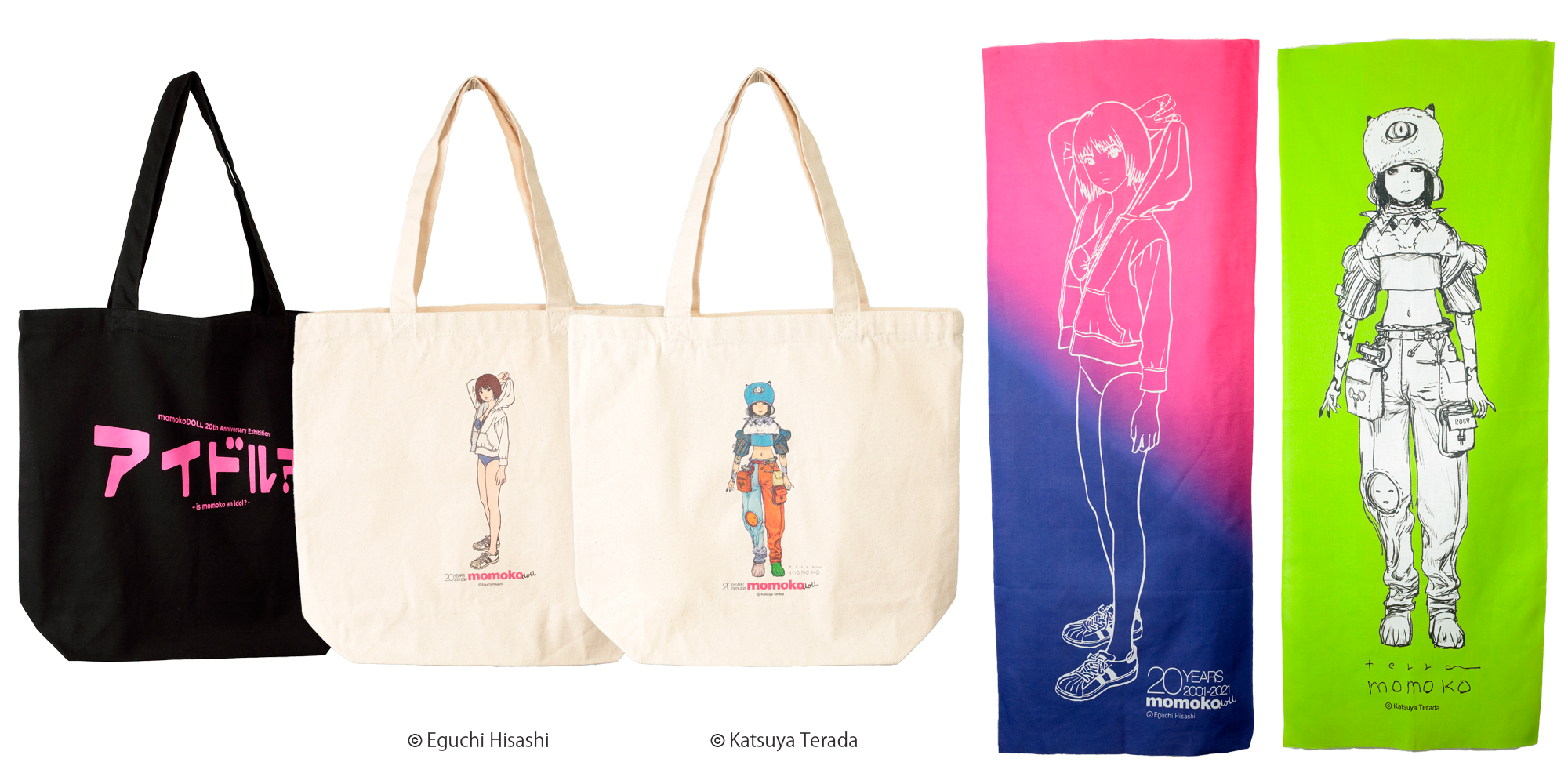 また、江口寿史さん(漫画家、イラストレーター)、寺田克也さん(漫画家、イラストレーター)に描いていただいたmomokoのイラストを用いたグッズも販売します!!