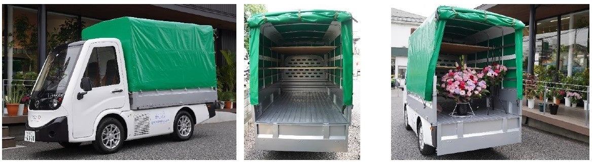 今回の実証実験は、お届け先に近い加盟店が新鮮なお花をお届けする生花通信配達システムを運用するJFTD花キューピットにご協力いただき実施致します。商用EV車である「ELEMO」の社会実装を目的に、2022年5月20日(金)より1か月間、 JFTD花キューピット加盟店の埼玉県川口市の店舗で、生花の配達車輛として使用していただきます。実験に使用する車輛は、ピックアップタイプの「ELEMO」の荷室に、スタンド花なども積み込める高さの幌架装を施しました。