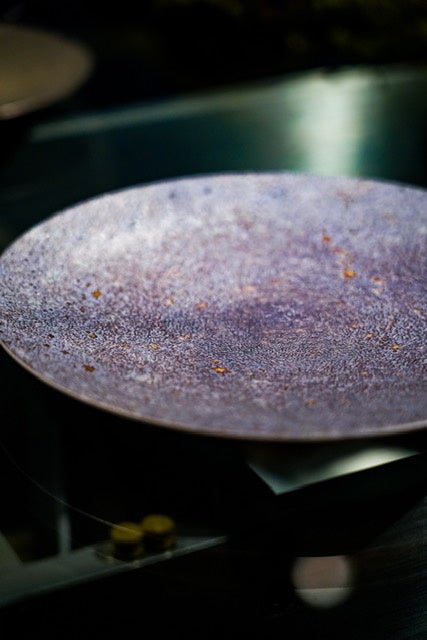 Yabu Pushelbergとのコラボレーションにより生まれた「HOSHIKAGE」は、星の光を意味する「星影」という言葉に由来し、とらえどころのない星々の光景から着想を得ています。光・色・質感で幻想的な表情を表現することで、銀河の美しさをテーブルに映し出す「HOSHIKAGE」は、私たちを神秘的な宇宙へと誘い、広大な宇宙と日常の食卓が同時に存在していることの奇跡を思い起こさせます。