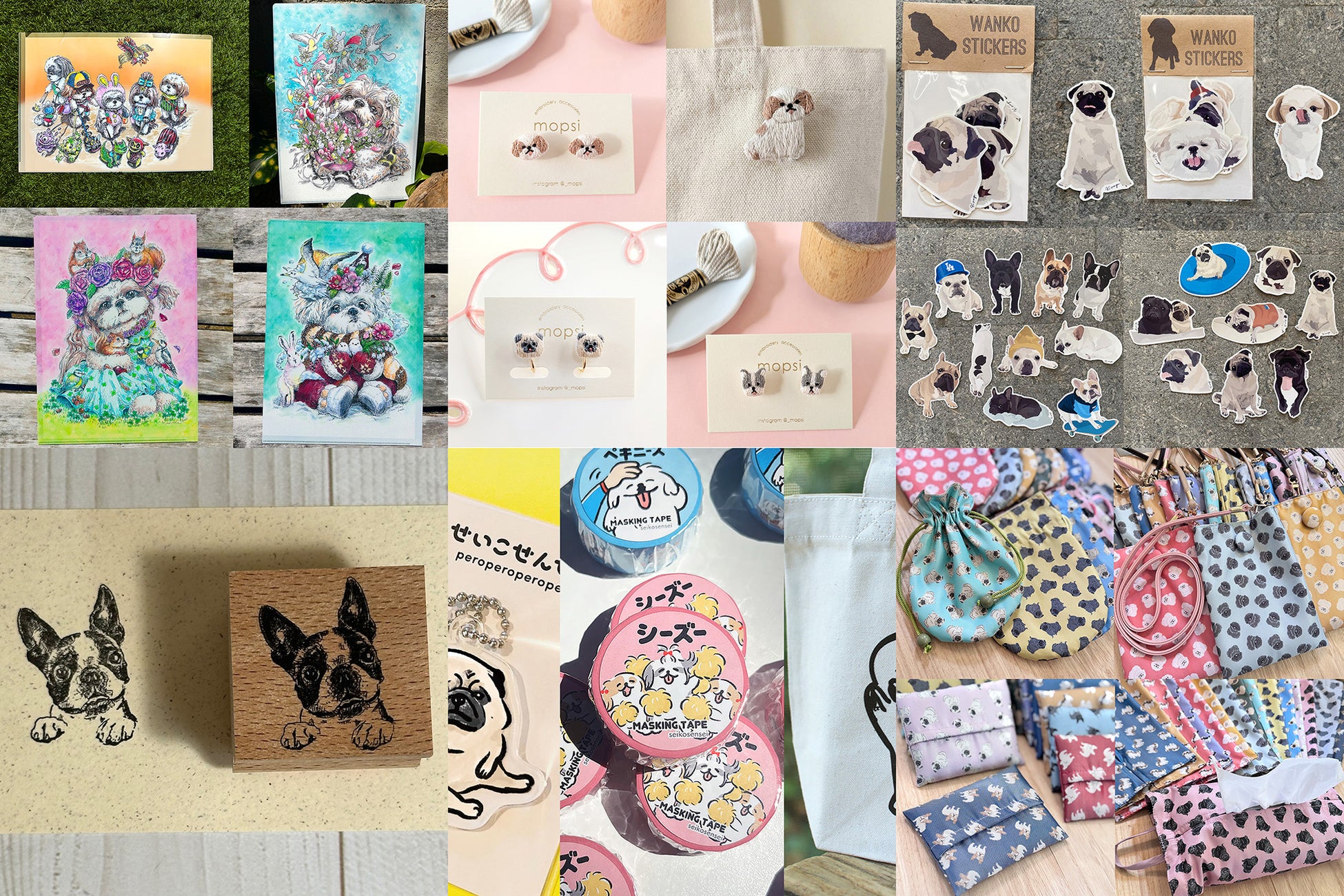 物販コーナーでは、人気ブランド「AUNITEM(@auntempo)」による新作クリアファイルやトートバッグが登場するほか、初出展となる「mopsi(@mopsi)」が手刺繍によるパグやシーズー作品を初披露。「katomayu(@katomayu)」の新作巾着袋や、「うちの子はんこ工房(@uchinoco.stamp)」のオーダーはんこなど、日常使いやギフトにも最適なアイテムが揃います。さらに、「せいこせんせい(@seiko.sensei)」や「K.factory tom&willy(@k.factory_tom.willy)」などによる会場限定の新作グッズも展開予定。ここでしか出会えない一点ものや限定アイテムの数々にもご注目ください。