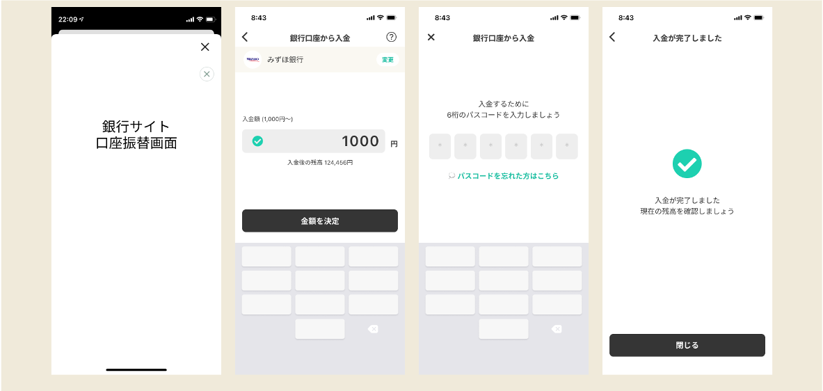 B/43(ビーヨンサン)をご利用のお客様はBank Payを利用することにより、都度各金融機関のWebサイトにログインする必要がなく、金額を入力するだけで、すぐに入金することが可能になります。