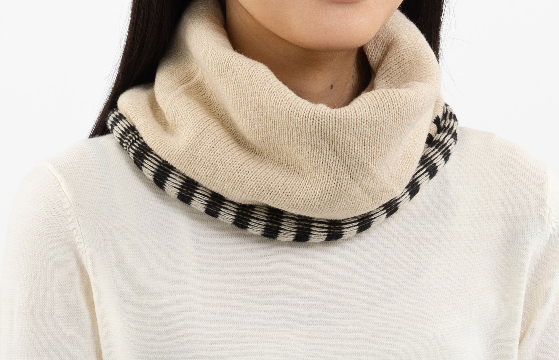 スヌードはすっぽりかぶるだけで首を冷えから守ります。
