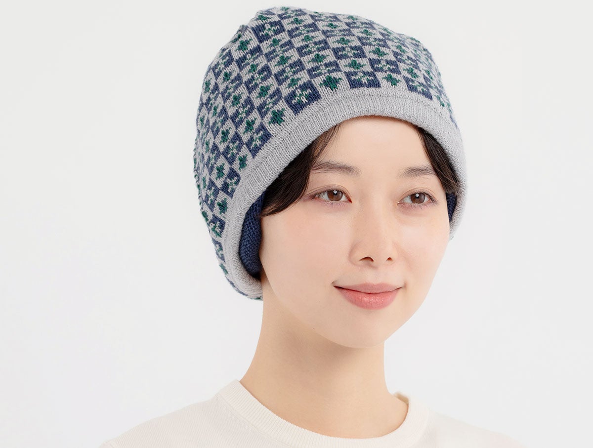 また、TUTUMUのスヌードは、裏返してねじることで帽子にも早変わり。長い筒状のため、臨機応変に冷え対策が出来ます。