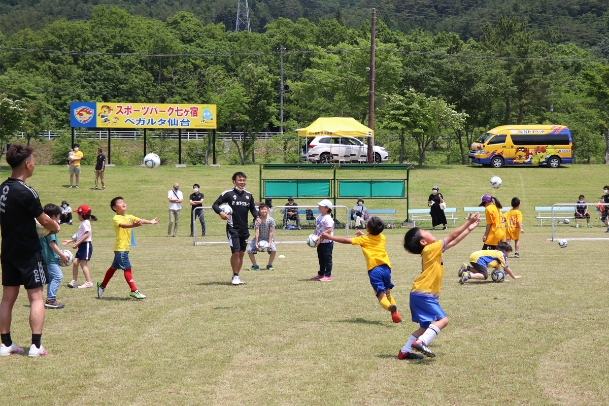 小学生を対象にした「サッカー教室」を七ヶ宿ダム自然休養公園運動広場(通称「スポーツパーク七ヶ宿ベガルタ仙台」)で開催します。