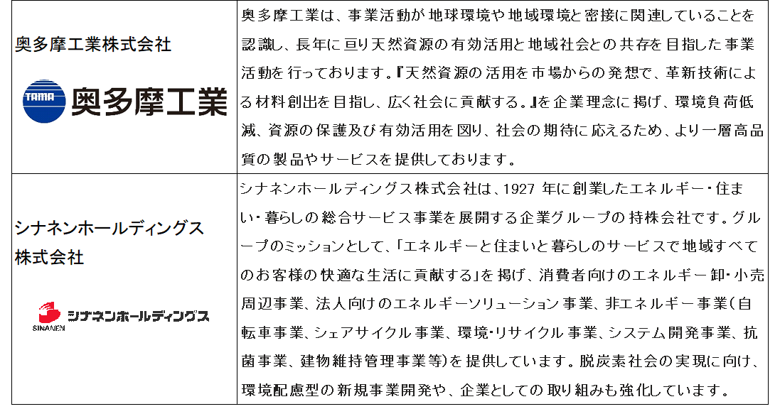 この度、奥多摩工業株式会社とシナネンホールディングス株式会社の2社が再エネ主力時代における循環型で持続可能な脱炭素社会の実現に向けたオープンイノベーションプラットフォームのC2X(Carbon to X)プロジェクトに参画することになりましたので、お知らせいたします。