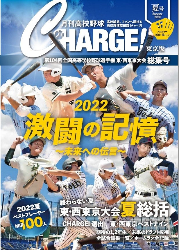 【月刊高校野球CHARGE!東京版 第104回全国高等学校野球選手権 東・西東京大会総集号】2022年9月2日(金)より全国書店(一部を除く)、Amazon、都内セブンイレブンなどで発売