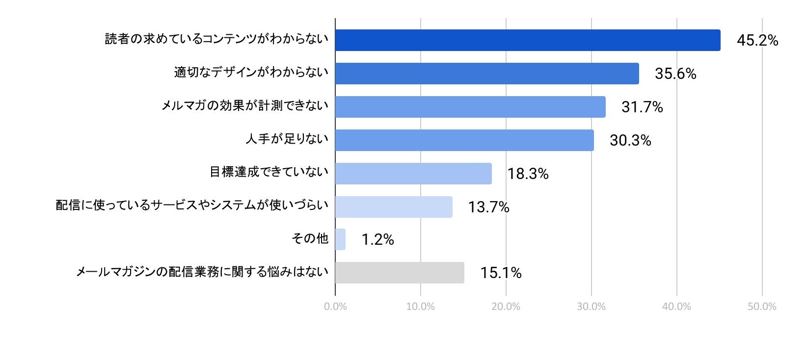 また、本調査ではメルマガ配信に関する悩みも聞いています。
