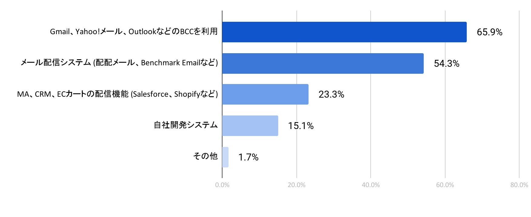 *本設問は、「メールマガジンの配信方法」についての設問で「Gmail、Yahoo!メール、OutlookなどのBCCを利用」のみ選択をした回答者(33.7%)を除いた66.3%の方を対象としました。