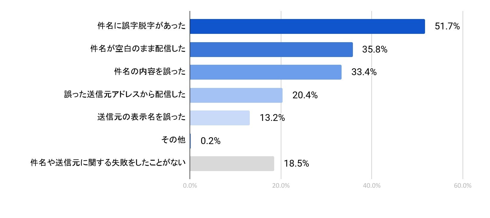 件名の誤字脱字が1位(51.7%)となり、2位と3位も件名に関する失敗となりました。