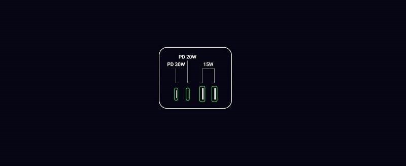 | USB急速充電規格 | USB-C : PD3.0、PPS、QC4+(QC4.0/QC3.0)、FCP、AFC、APPLE 5V2.4A、BC1.2; USB-A : QC3.0、FCP、AFC、APPLE 5V2.4A、BC1.2 |