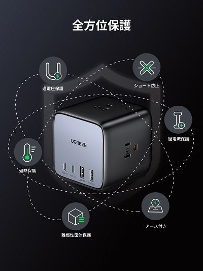 | パッケージ内容 | 1xUGREEN DigiNest Cube USB電源タップ キューブ型 1x取扱説明書 |