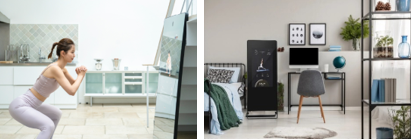 さまざまなフィットネスコンテンツを映し出し、ユーザーのワークアウトをサポート。本体のデザインはミニマルでスタイリッシュ、そしてエレガンスさも兼ね揃え、どんな空間にもマッチするため、普段はお部屋を彩る姿見としての利用も可能です。