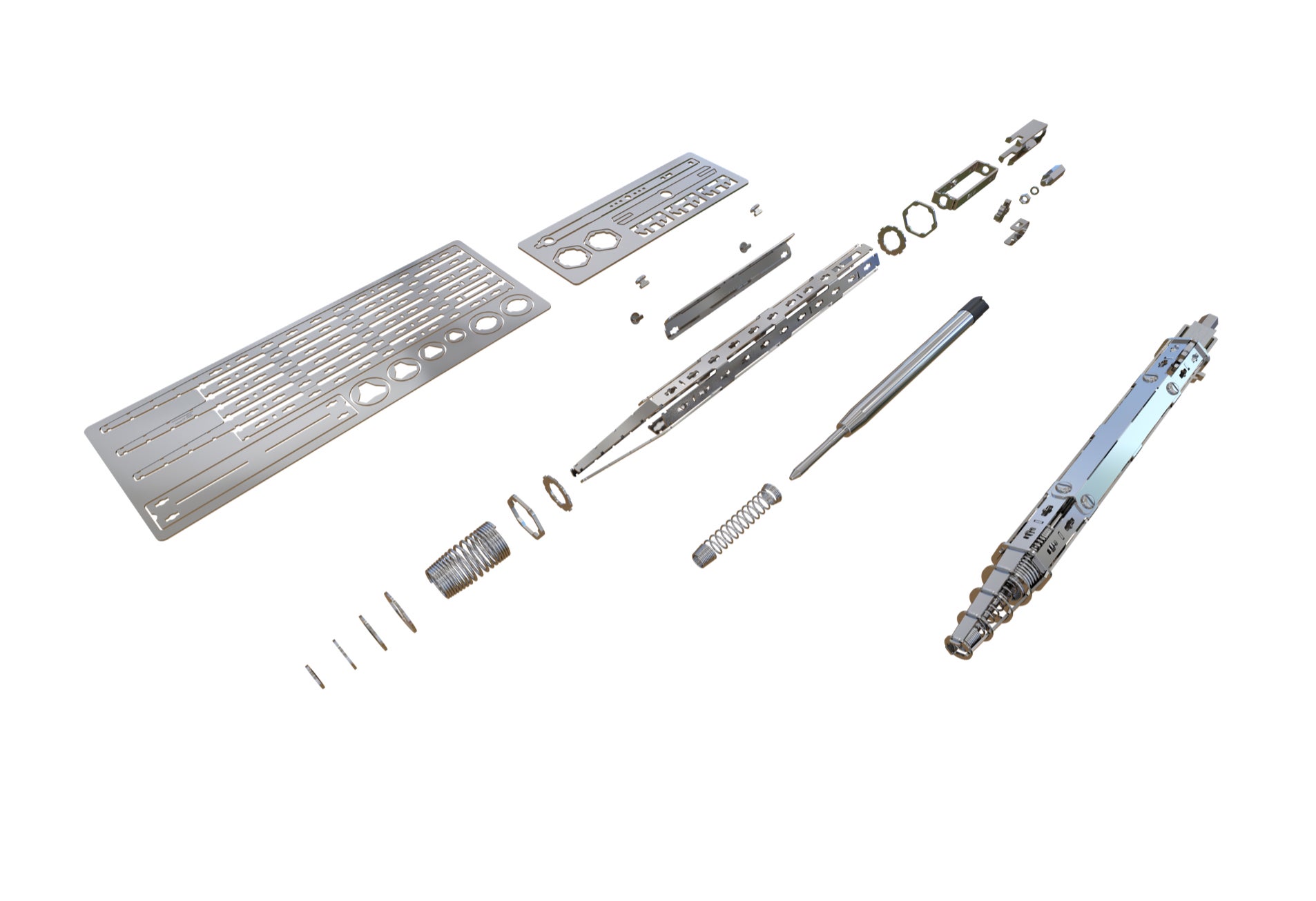 ステンレス製のパーツが道具なしで切り離せ、粘着剤なしでボールペンが作れる!