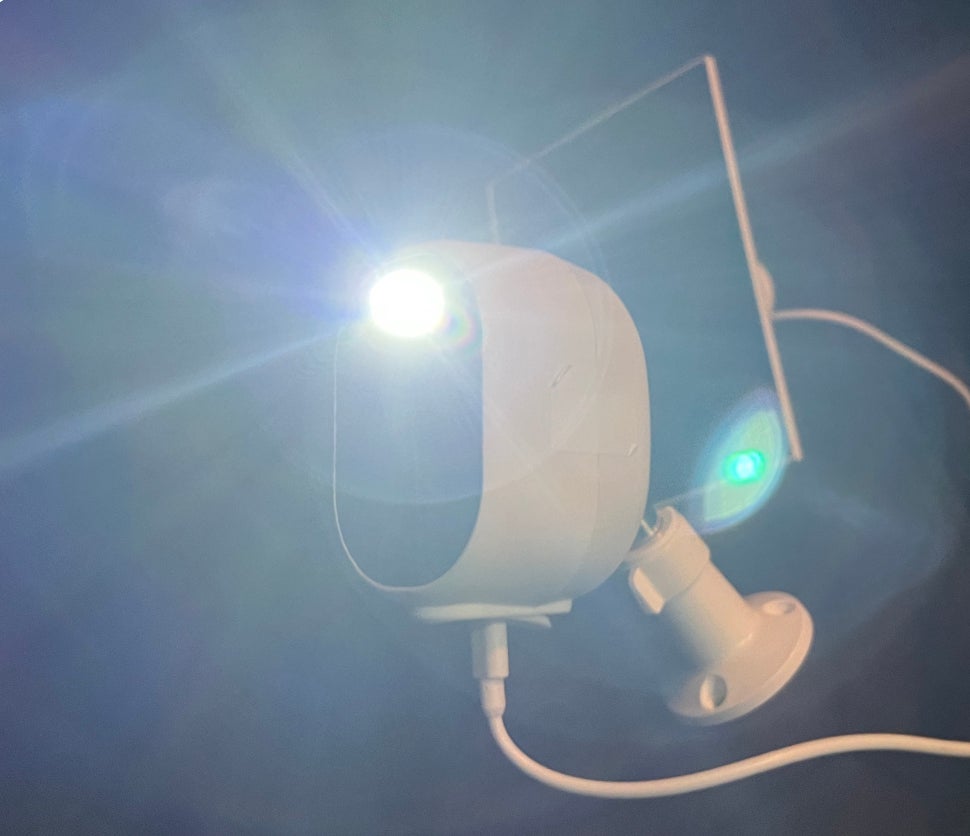 夜間に人間を検知すると、カメラが自動で光を発します。光を発しながらカラーで撮影が始まります。