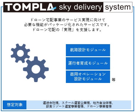 配送専用ドローンや航路設計、運航者育成などドローン配送関連ビジネスを計画中の事業者に必要な機能をパッケージごとに提供する「TOMPLA sky delivery system」の販売を開始