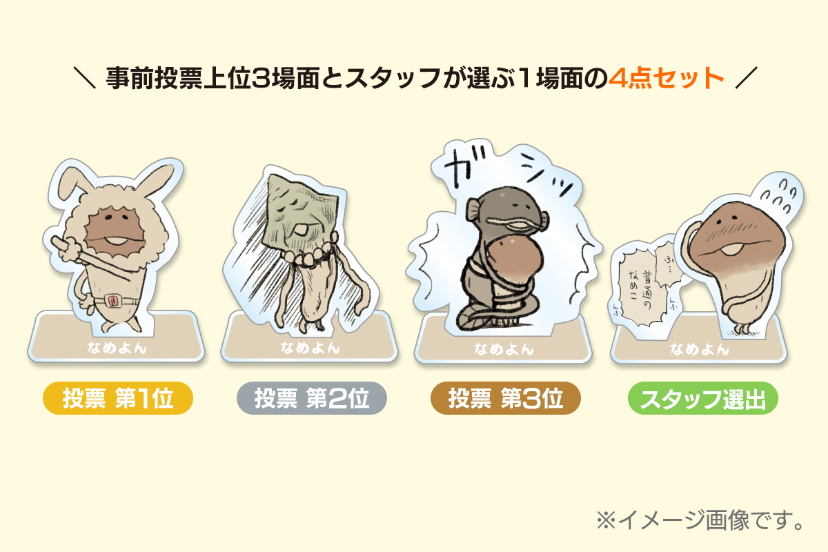 4コマにちなみ4つの名場面をアクリルスタンドにしてセットでお届け!