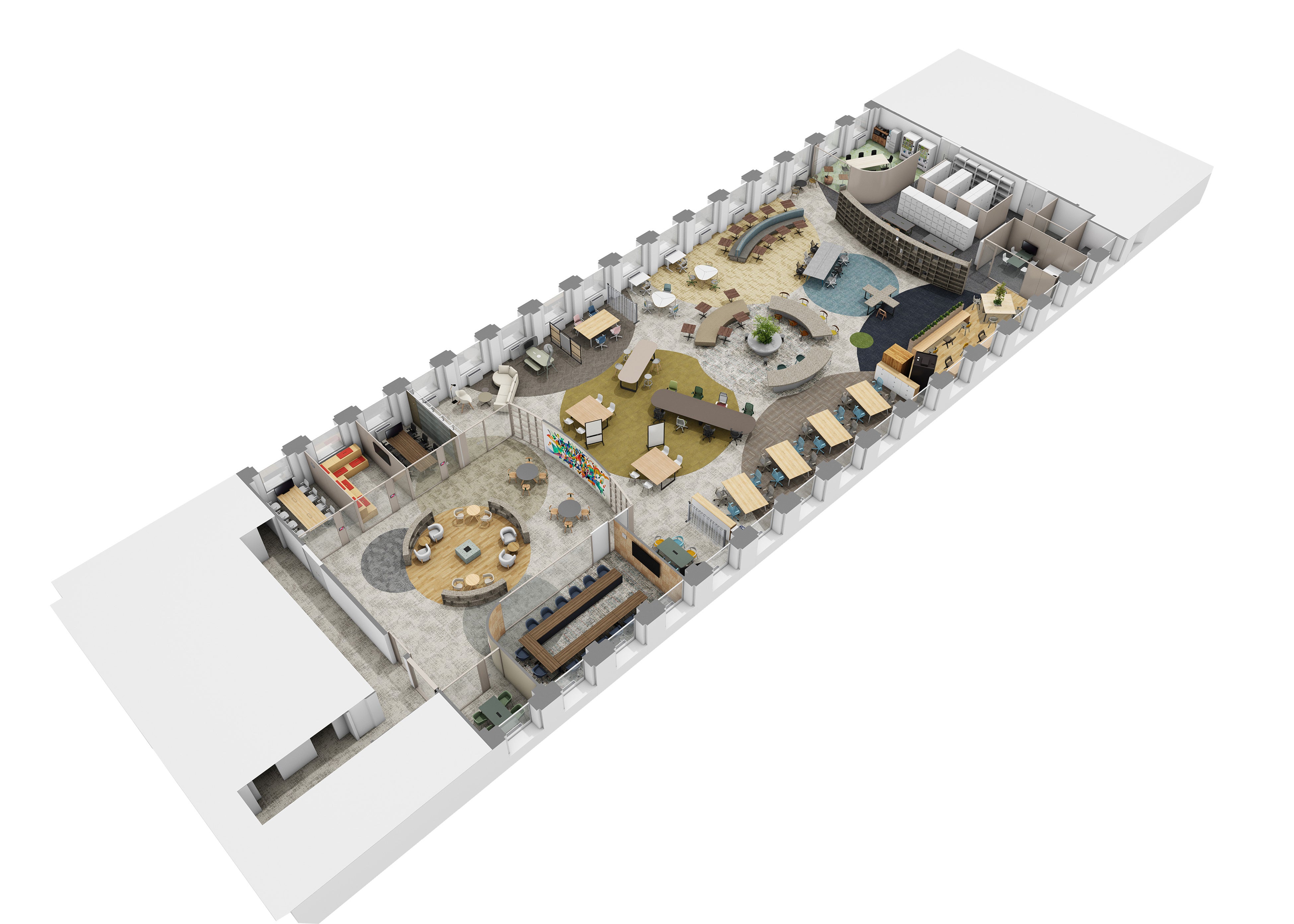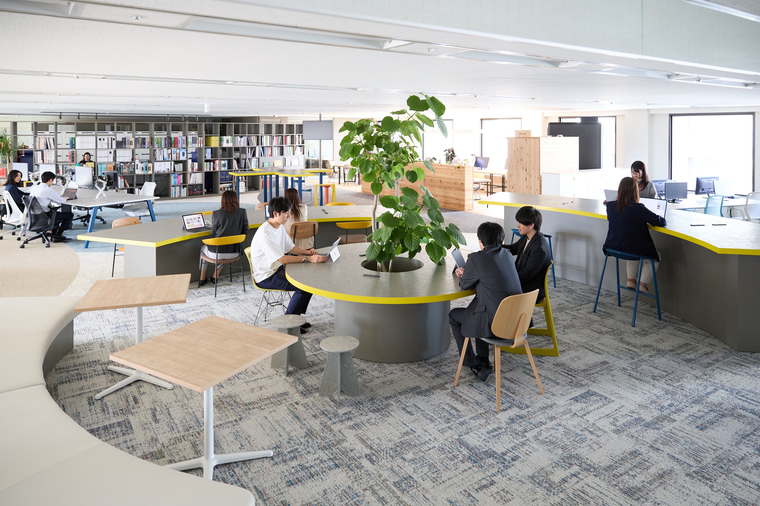 私たちは自社オフィスを実験の場と捉えています。部門や会社の垣根を越えたコミュニケーションにより生み出される革新的なアイデアと、位置情報システムから収集されたデータの活用により、オフィス空間を常にアップデートしていきます。自分たちの働く空間や働き方の刷新の中で得られた知恵や経験が、お客様への提案の質を向上させ、新たな価値を提供いたします。そして社会全体の「はたらく」をゆたかにしていきたいと考えています。