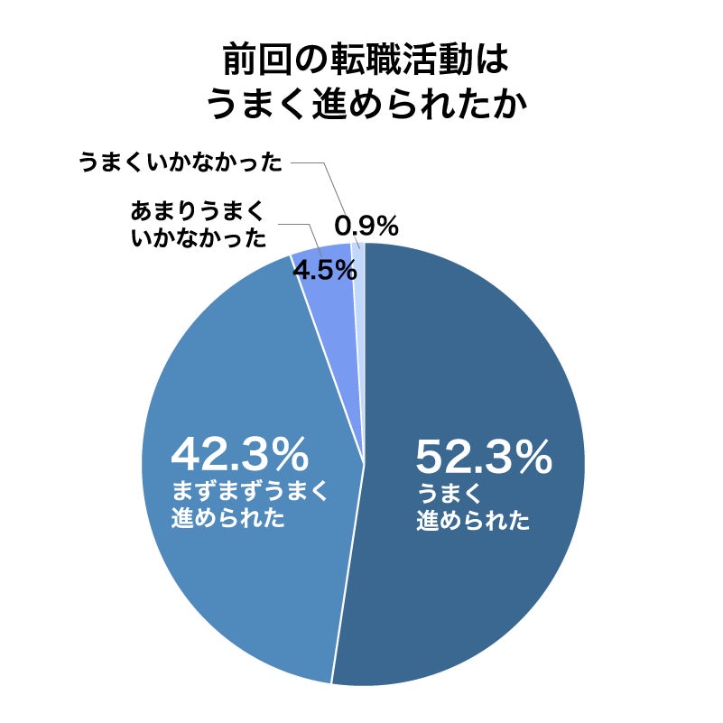 実際に転職を経験している医師は回答者の7割を超えており、そのうち「前回の転職活動をうまく進められた」「前回の転職活動に満足している」と感じている医師は、いずれも約9割でした。