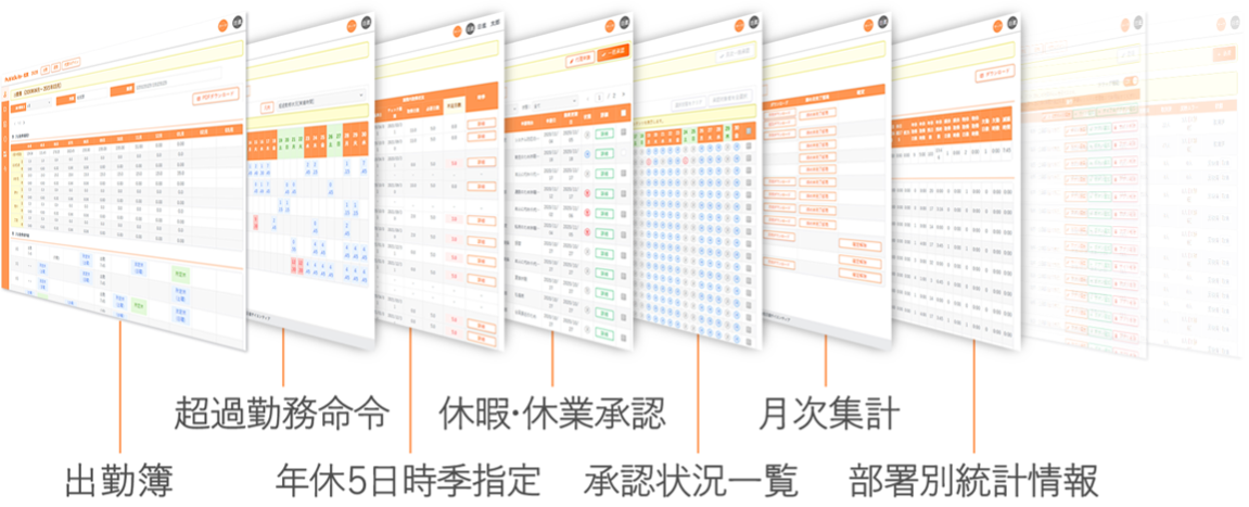 スマカンの就業システムは、働き方改革関連法の公布に伴う、変形労働時間制、フレックス労働制、在宅勤務といった働き方の変化にも対応しております。