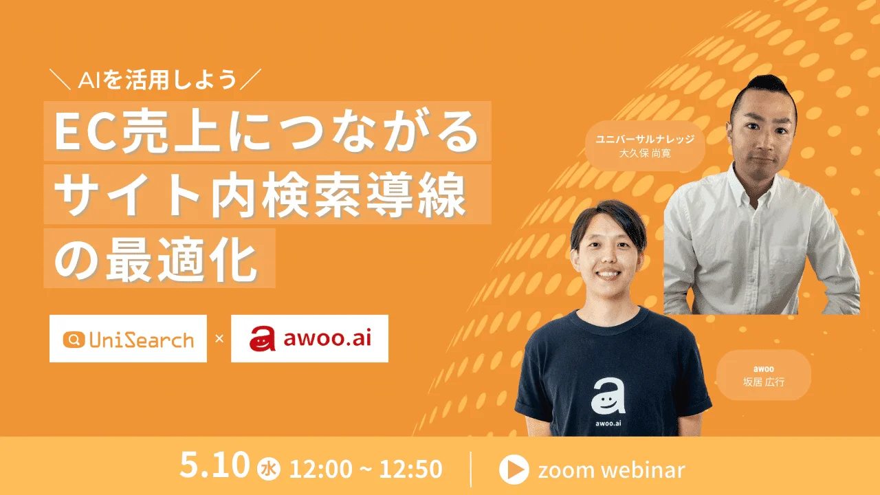 【5月10日開催】awooとユニバーサルナレッジの共催セミナー:AIを活用した「サイト内検索機能の最適化」と「売上改善」