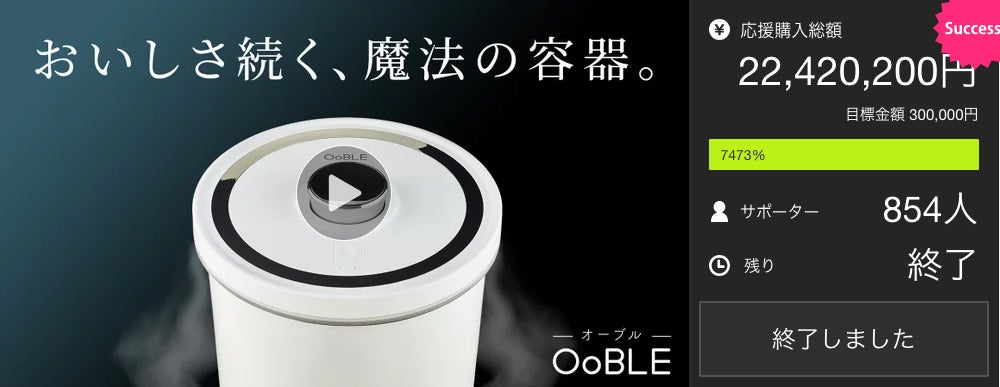 国内クラファン史上 No.1真空保存容器となったOoBLEが「予約販売」を開始しました。