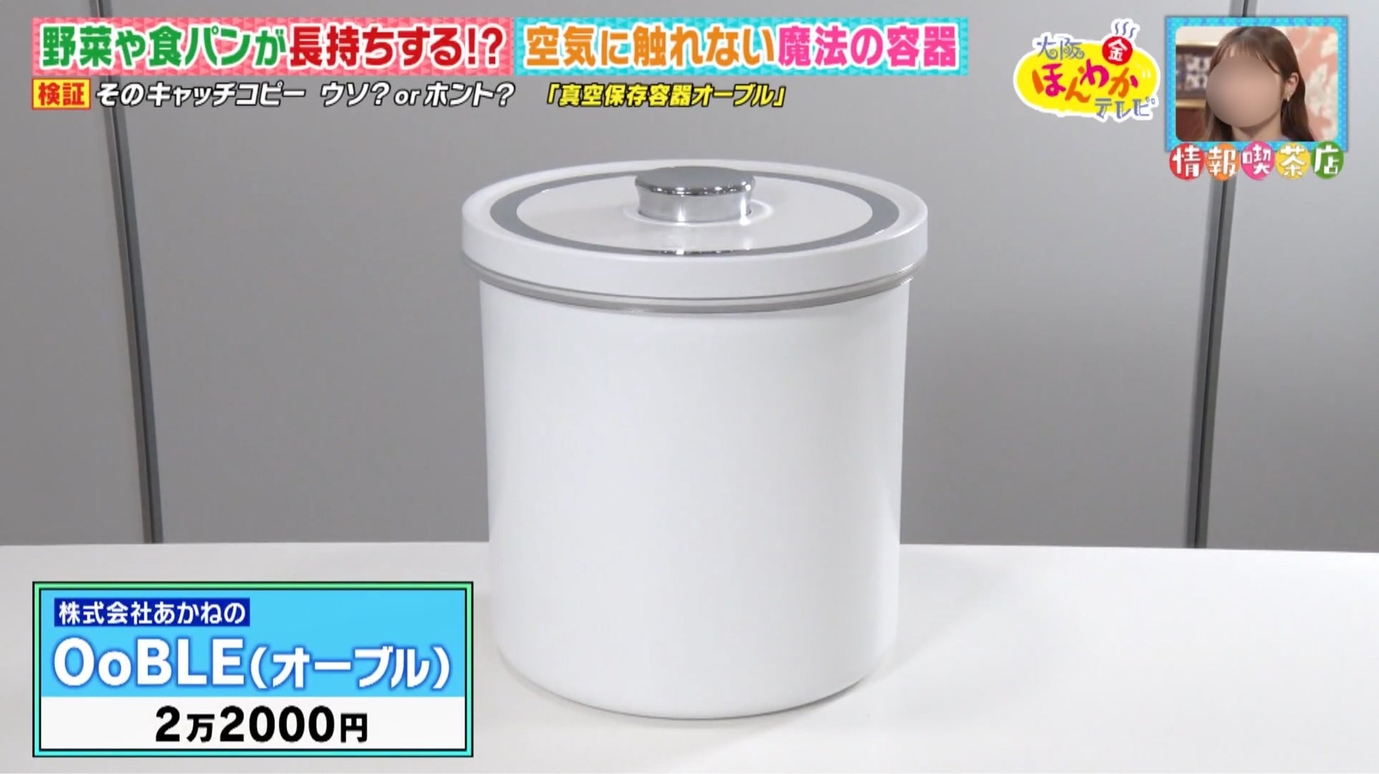 2023年12月22日(金)19時スタート。読売テレビ系情報バラエティ番組「大阪ほんわかテレビ」にて真空保存容器OoBLEが紹介されました。番組内では「真空保存で本当に魔法はおきるのか?」という疑問を、実際に商品を使って検証していただく面白い企画となっています。