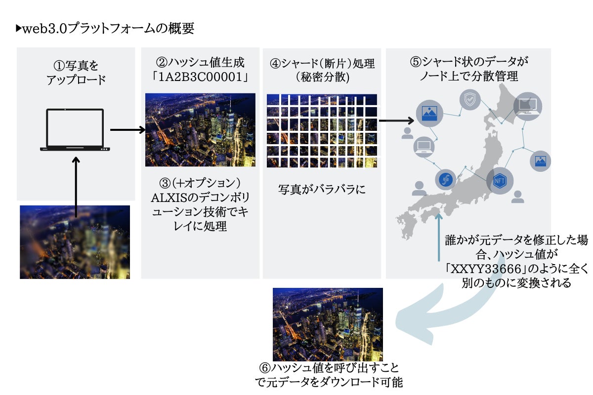 web3.0の秘密分散技術と画像鮮鋭化技術をMIXした、非中央集権・画像共有ストレージの開発プロジェクトです。このプロジェクトの目標は、個人や企業ユーザーが撮影した画像データをweb3.0のプラットフォーム上に保管する機能の開発と、データを保管する際に元画像をより綺麗にする「鮮鋭化(デュアルレゾリューション=デコンボリューション+超解像)」機能の実装を行い、クラウドファンディングを通して初期ユーザーを募集し、より多くの方にプラットフォームを利用いただくことです。