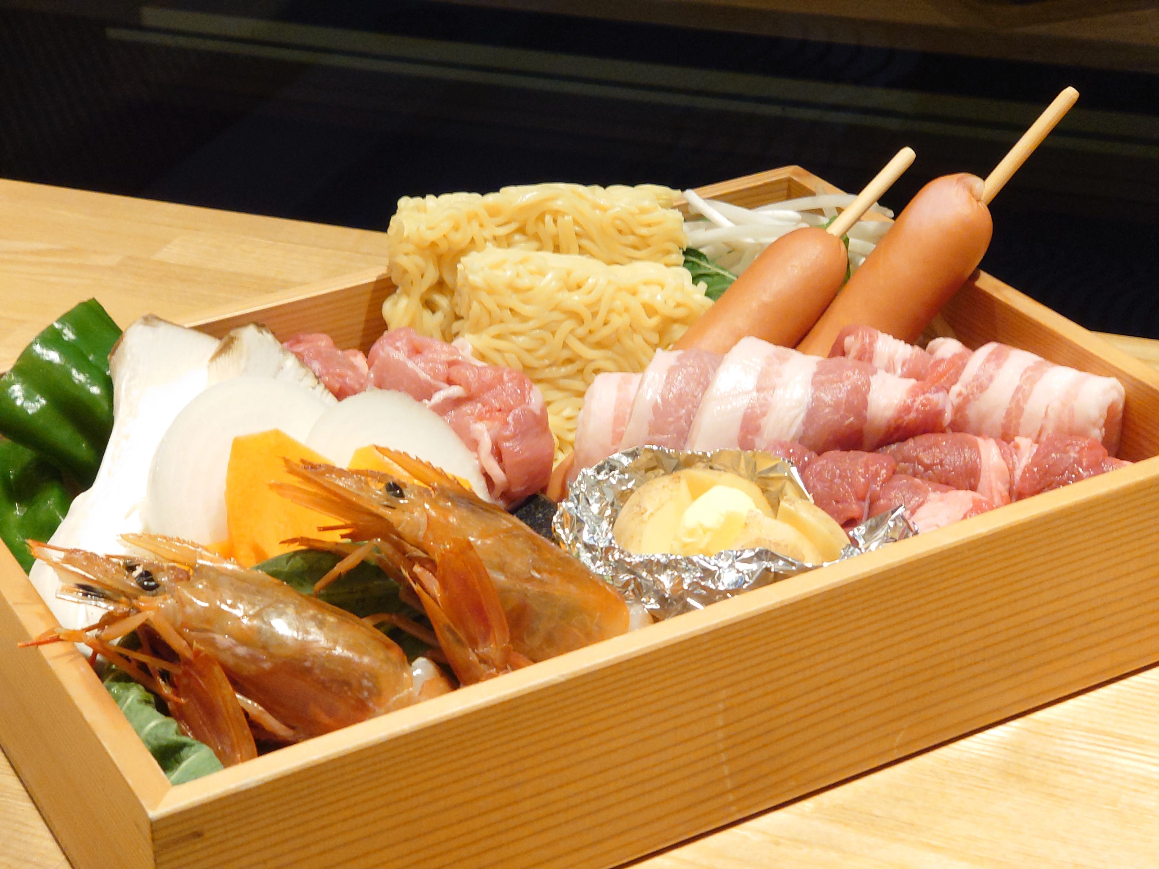 【食材例】牛肉、豚肉、有頭エビ、ピーマン、人参、玉ねぎ、えりんぎ、キャベツ、