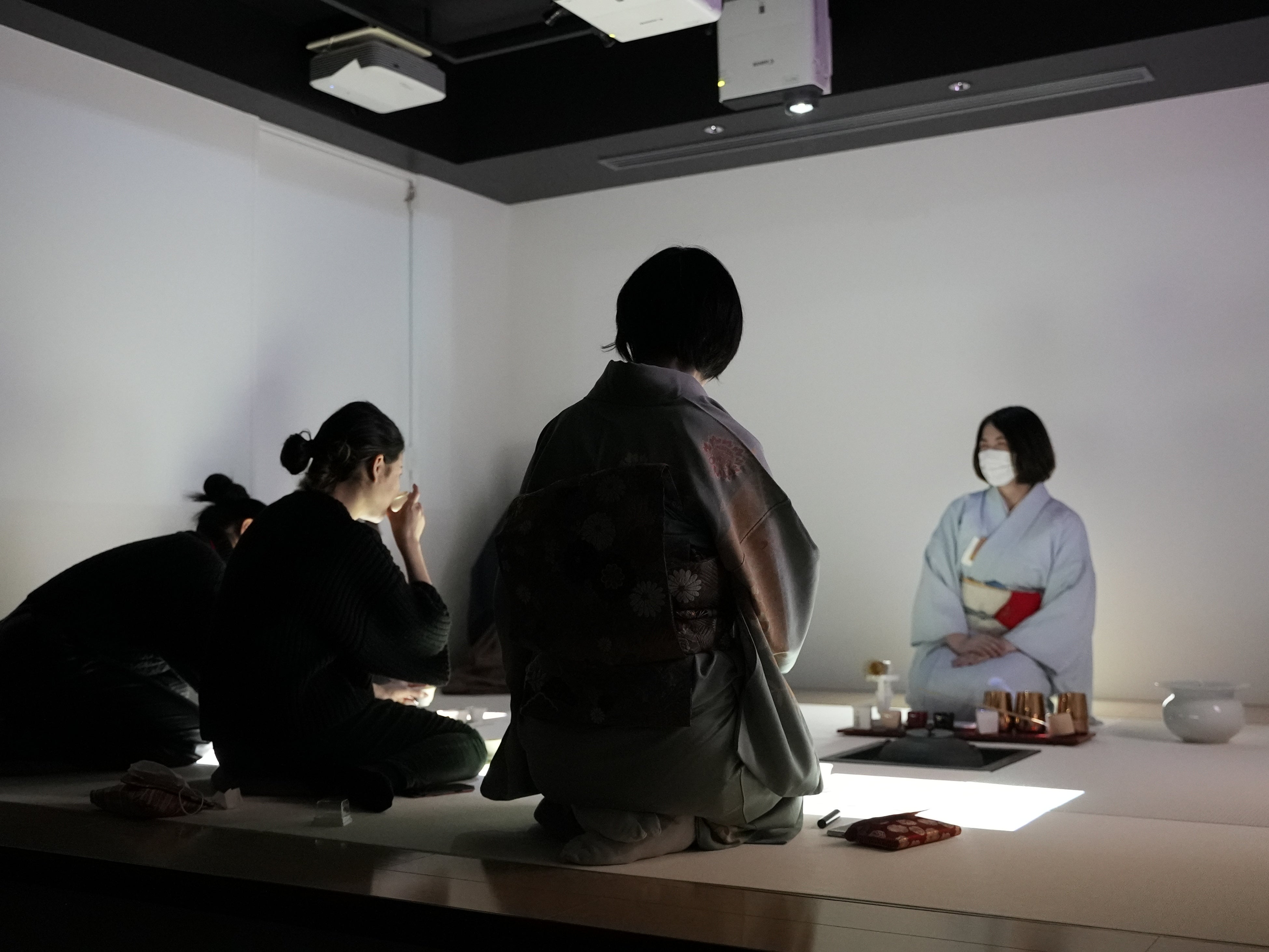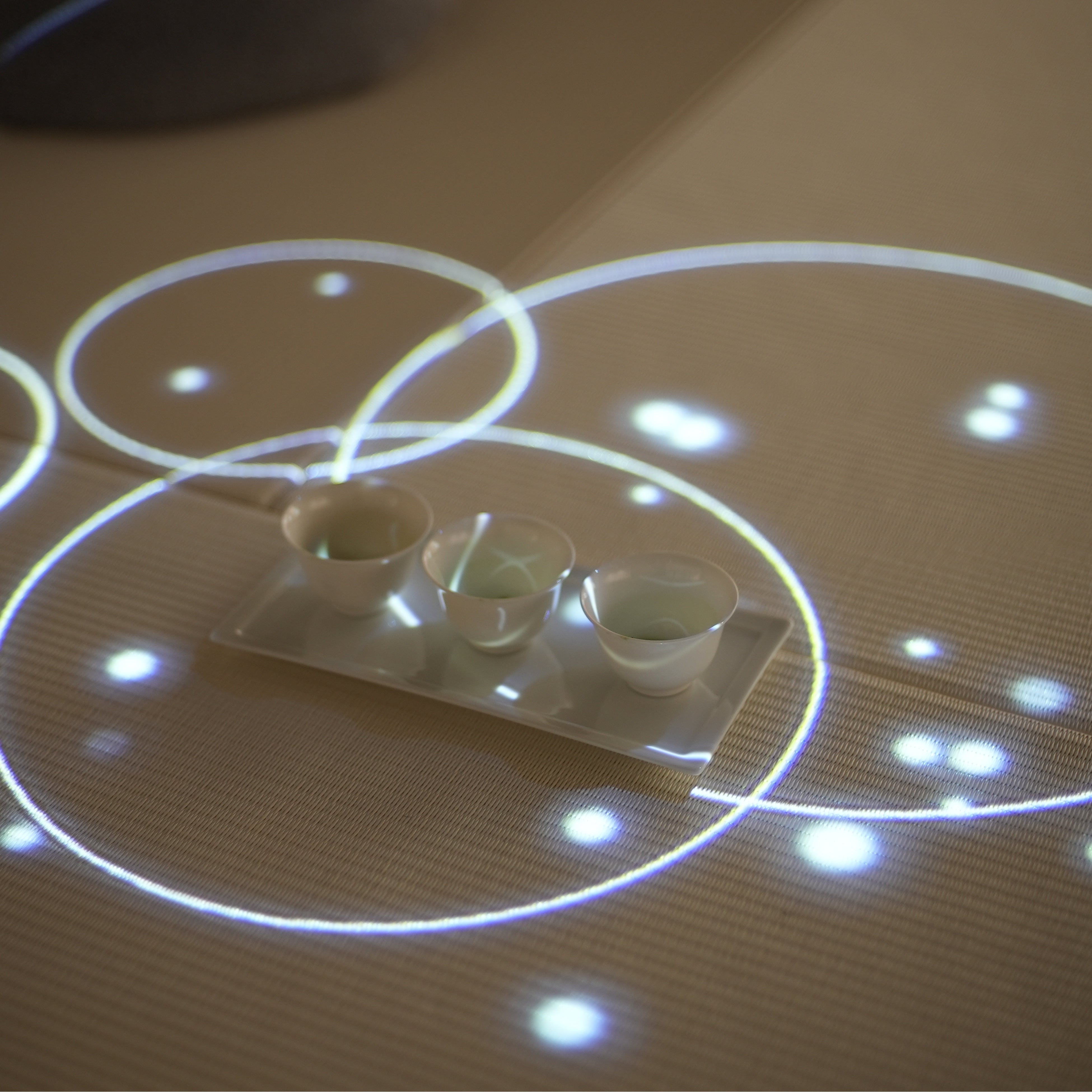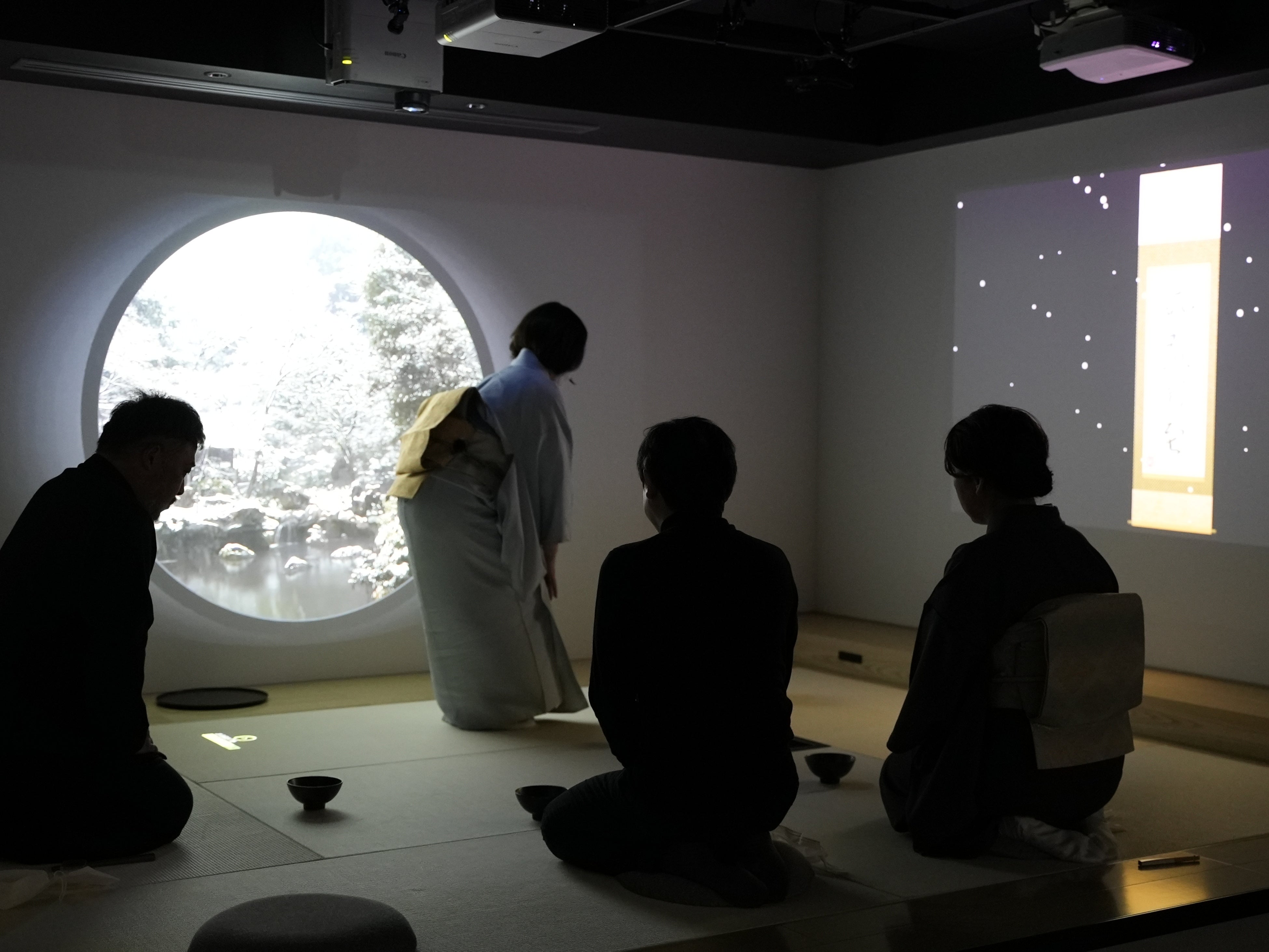 さまざまなジャンルでDX化が進む中、日本の代表的な伝統文化である茶の世界も、デジタルと融合した世界観を構築することで、従来の閉ざされた世界から、無限に広がる茶の湯の可能性と新しい未来を体感いただけた一日となりました。デジタルな世界観はもちろん、茶室の畳に映像で様々なディレクションが出ることから、茶の湯の初心者や外国人、子供など茶道になじみのない方でもお作法を気にすることなく参加できるのもサイバー茶会の特徴。映像の指示通りに動くだけでいいため、初心者や海外からのゲスト向けの教育・教養コンテンツとしても活用可能です。また茶室の掛軸や風景も映像を入れ替えるだけで自由自在に変更可能。茶会にDXを取り入れることで、敷居が高く思われがちな茶道を気軽に楽しく体験いただける入り口として、デジタルの面白さを体験いただける機会となりました。