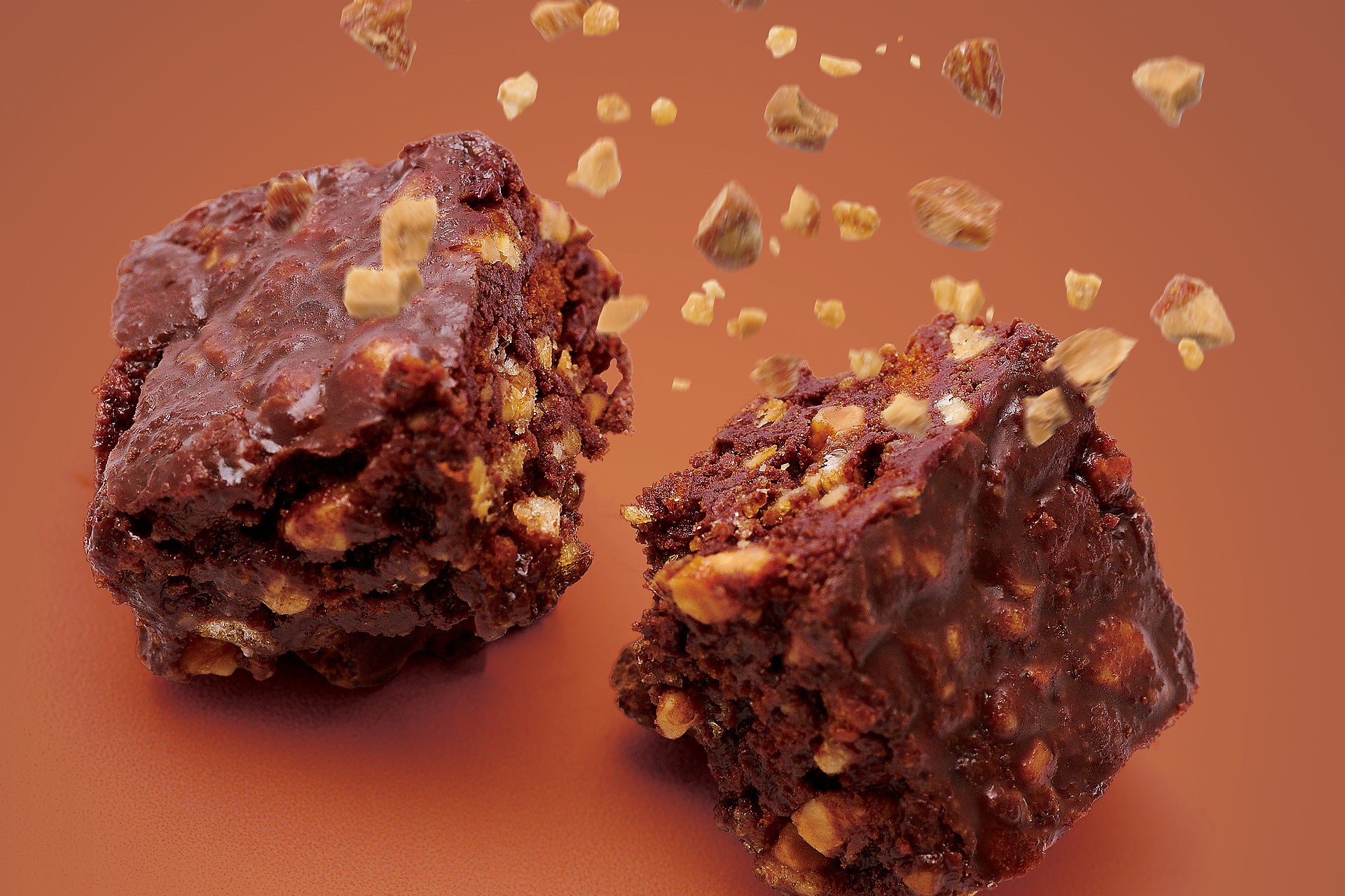 【低GI・グルテンフリー・乳製品不使用】と、クラフトチョコ・有機キヌアパフ・アーモンドキャラメリゼの本格食感。ストイックすぎず、「これが、ちょうどいい答え。」を体現する「日々に効くおやつ。」
