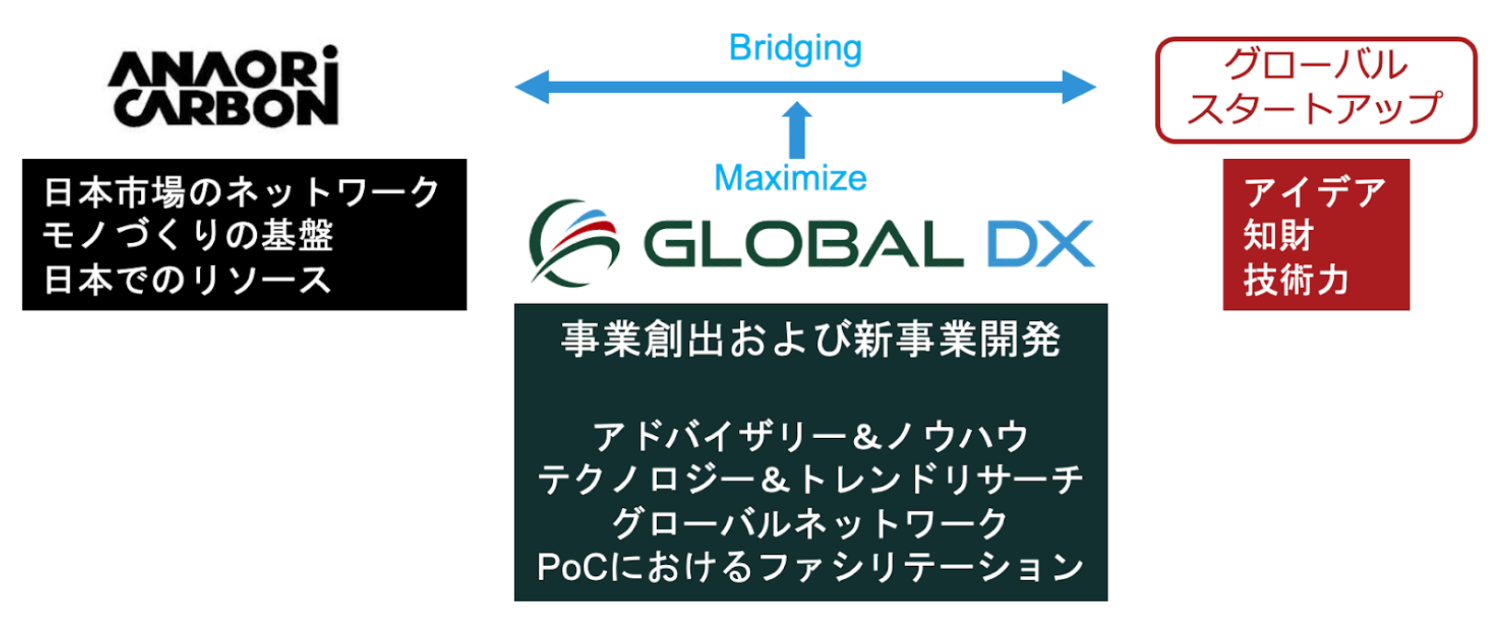 株式会社グローバルDX(本社:大阪市北区、代表取締役社長:疋田 彰宏、以下「当社」)は「カーボンニュートラル」と「サステナブルマテリアル」をテーマに、穴織カーボン株式会社(本社:大阪府茨木市、代表取締役社長:穴織 千穂、以下、穴織カーボン)の新規事業創出の支援をスタートいたしました。当社は、グローバルスタートアップトレンドのリサーチからイノベーションテーマの設定、連携する海外テクノロジーの探索、そして新事業創出まで、一連のフローを通して、事業開発を伴走支援いたします。これからの未来の時代に向けたサステナブルな資源へ変換することで、持続可能な社会そして地球への貢献を目指します。