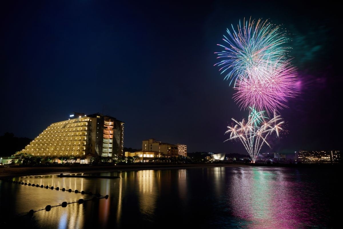 毎年ご好評いただいている打ち上げ花火は、今回過去最多の25日間開催。ホテル内マリーナより各日100発打ちあがり、沖縄の夜空を彩る大輪の花火が、南国の雰囲気とともに特別な夜を演出いたします。また、昨年に引き続きの開催となるナイトプールは、柔らかなライトに照らされた幻想的な雰囲気をお楽しみいただけます。本年は新たに全長31mのウォータースライダーも加わり、スリル満点のアトラクションもあわせてご満喫ください。さらに、期間限定で沖縄らしいフード・ドリンクをご提供する「Night Starfish Beach Café」や夏らしいゲームを楽しめる「夏色縁日」も加わり、夜まで思い出いっぱいのひとときをお過ごしいただけます。