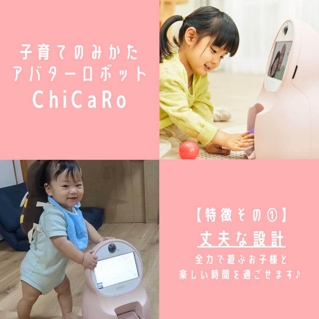 「ChiCaRo(チカロ)」は、「子育てのミカタを増やす」をコンセプトに開発された、乳幼児のための子育てお助けアバターロボットです。スマートフォンやタブレットを通じて簡単に操作でき、画面越しのビデオ通話だけでなく、ロボット本体を動かして乳幼児と身体を使った遊びを遠隔で楽しむことができます。