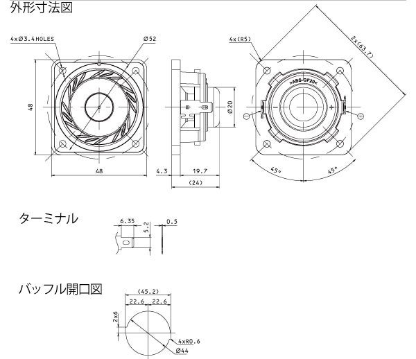 アナウンスやガイダンスなど、音声POPや音声案内機での使用を想定した音響性能を備えた組込用小型フル レンジスピーカーです。