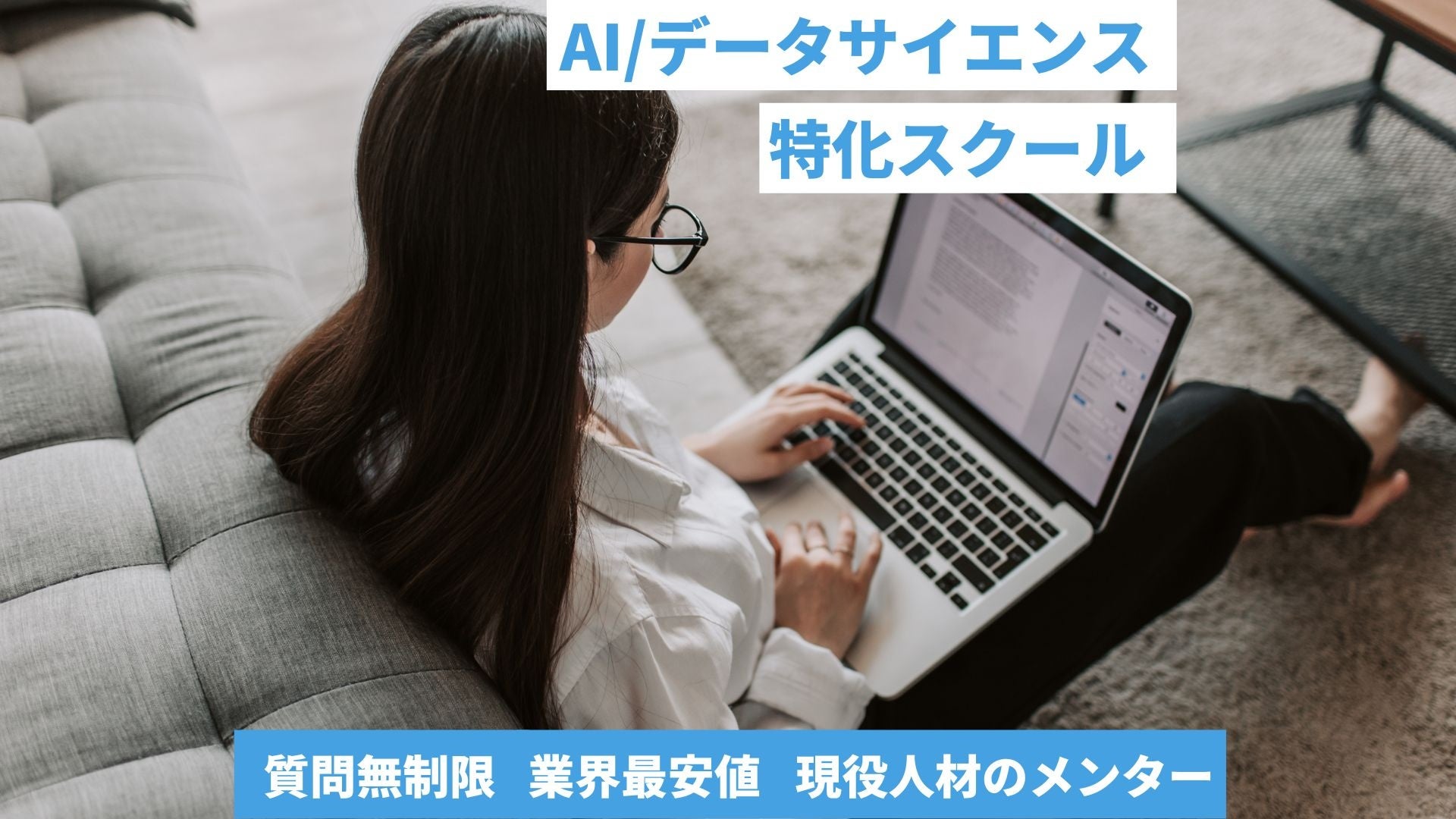 内容:全コンテンツを受講し放題、コースが終了するまで無制限質問可能、1回30分の現役データサイエンティストによるマンツーマンメンタリングを自分のタイミングで全4回可能