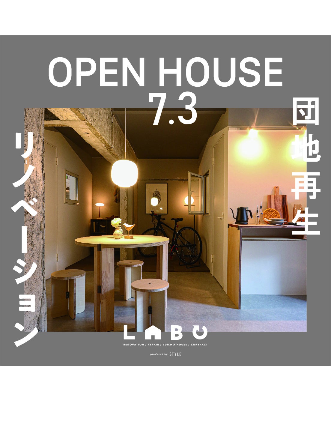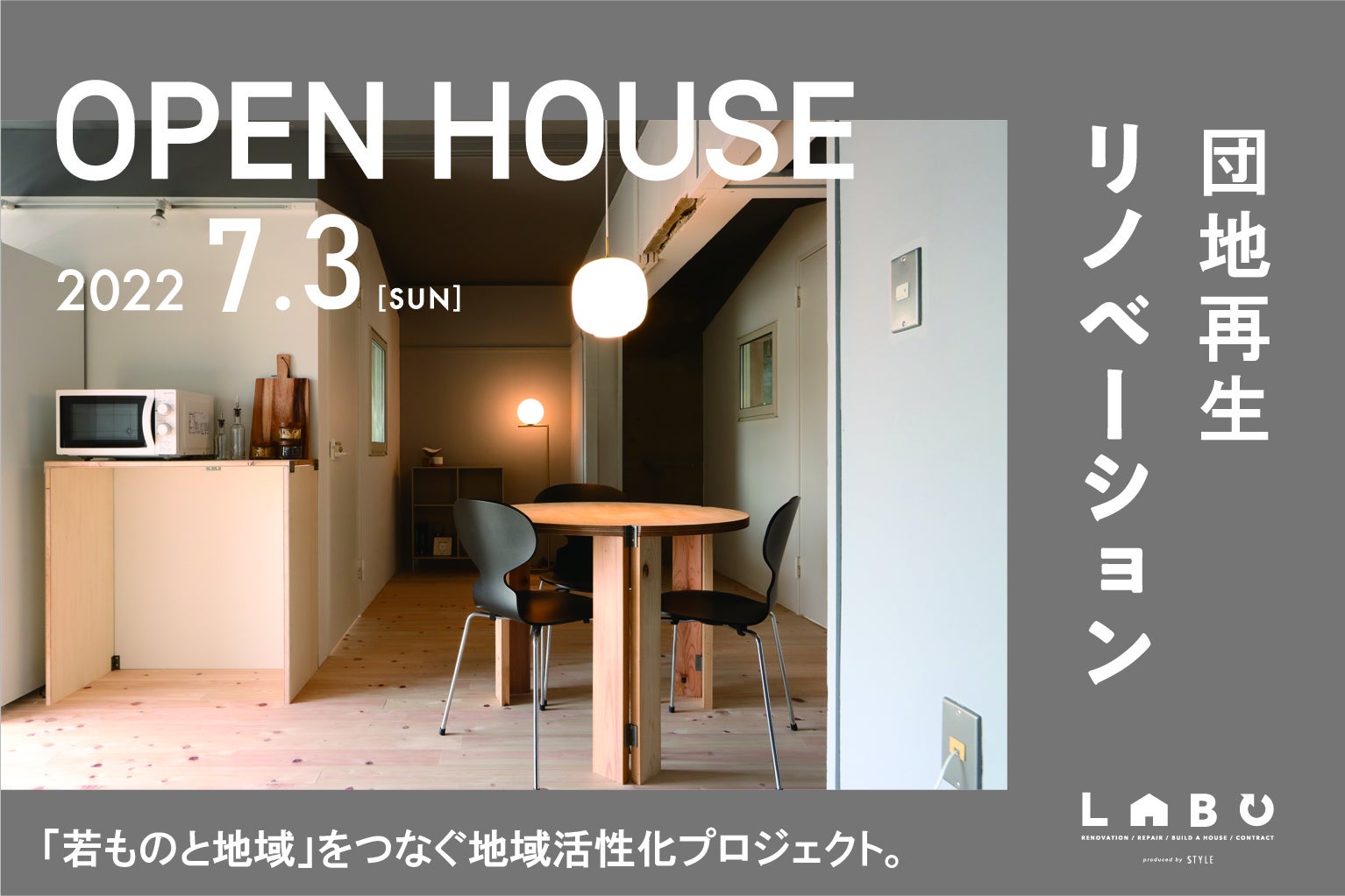 群馬県前橋市広瀬町にある広瀬団地にて団地の一室をリノベーションした学生向けのシェアルームが完成致しました。有限会社スタイル(代表 松島郁夫 群馬県伊勢崎市日乃出町399-1)は、設計・内装工事、コーディネートを担当し、学生や他企業様と地域活性化に向けた活動に取り組みました。この度、地元前橋工科大学の学生と共に作り上げた団地再生プロジェクトの完成に伴いオープンハウスを行います。広瀬団地にて開催される七夕イベントと共に、プロジェクトで完成したシェアルームをご案内致します。