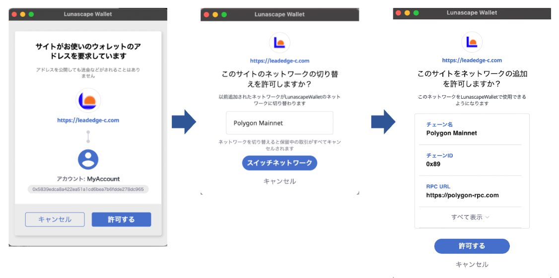 図2)3ステップでネットワークとトークンをウォレットに追加