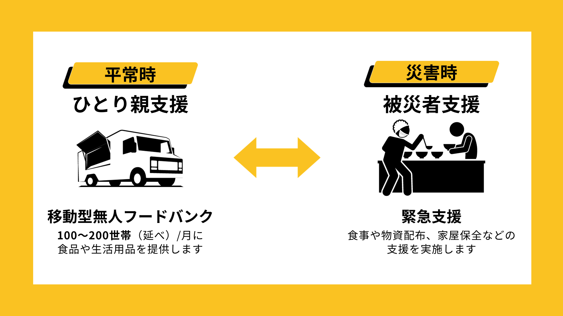 災害支援とひとり親家庭の食の課題を、フードトラックで解決します