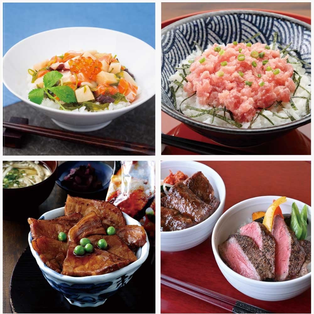 旅するように味わう厳選された丼をご家庭で。炊き立てご飯に乗せるだけ、レンジで簡単調理で海と大地の恵みを贅沢に盛り込んだ珠玉のどんぶりをセレクトしました。