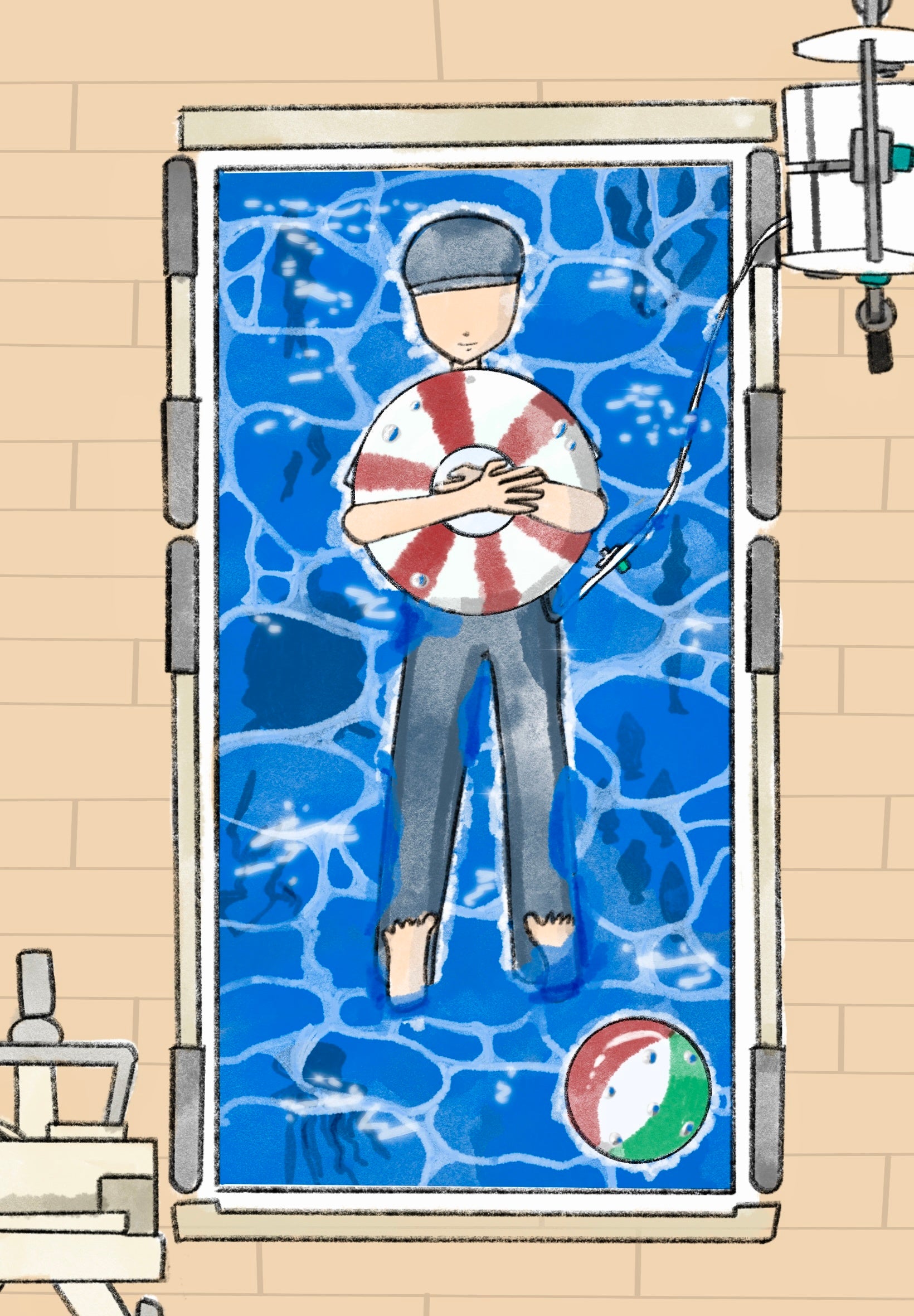入院してから、病室からでもいろいろなことができて色々な人と繋がれることを知りました。ベッドの上という狭い空間にもある無限の広がりと楽しさ、そして長い治療を続けるときの広い海を1人で漂っているような不安な気持ちを、ベッドを海にたとえることで表現しました。