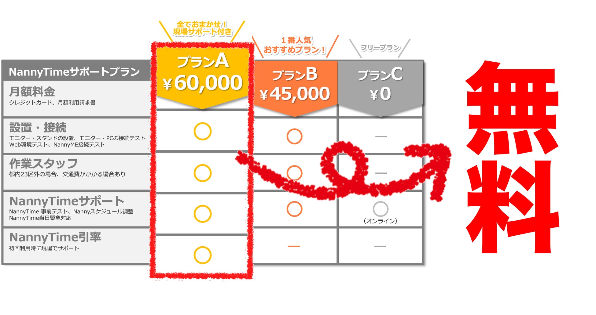 NannyME導入に際し、先生方の負担をなくす為、おまかせプラン(60,000円)をご用意していますが、こども達の知的好奇心を満たすチャンスである夏休みのお申し込みに限り、無料でご提供します。当キャンペーンにより、保育園・幼稚園の先生方の準備や手間がなく、簡単にNannyMEをはじめることができます。